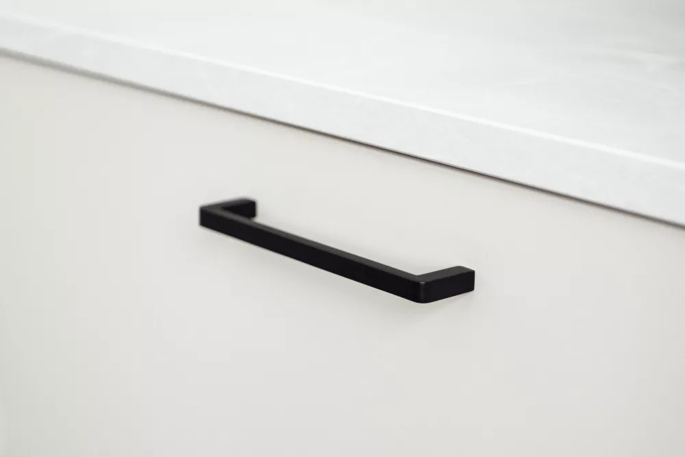 - Svarte beslag i et moderne kjøkken: I et moderne kjøkken passer glatte og minimalistiske håndtak best. For en stilren design som passer moderne kjøkken, anbefaler vi svarte, rette håndtak eller profilhåndtak i svart som blir en diskret detalj mot skapdøren eller skuffen.