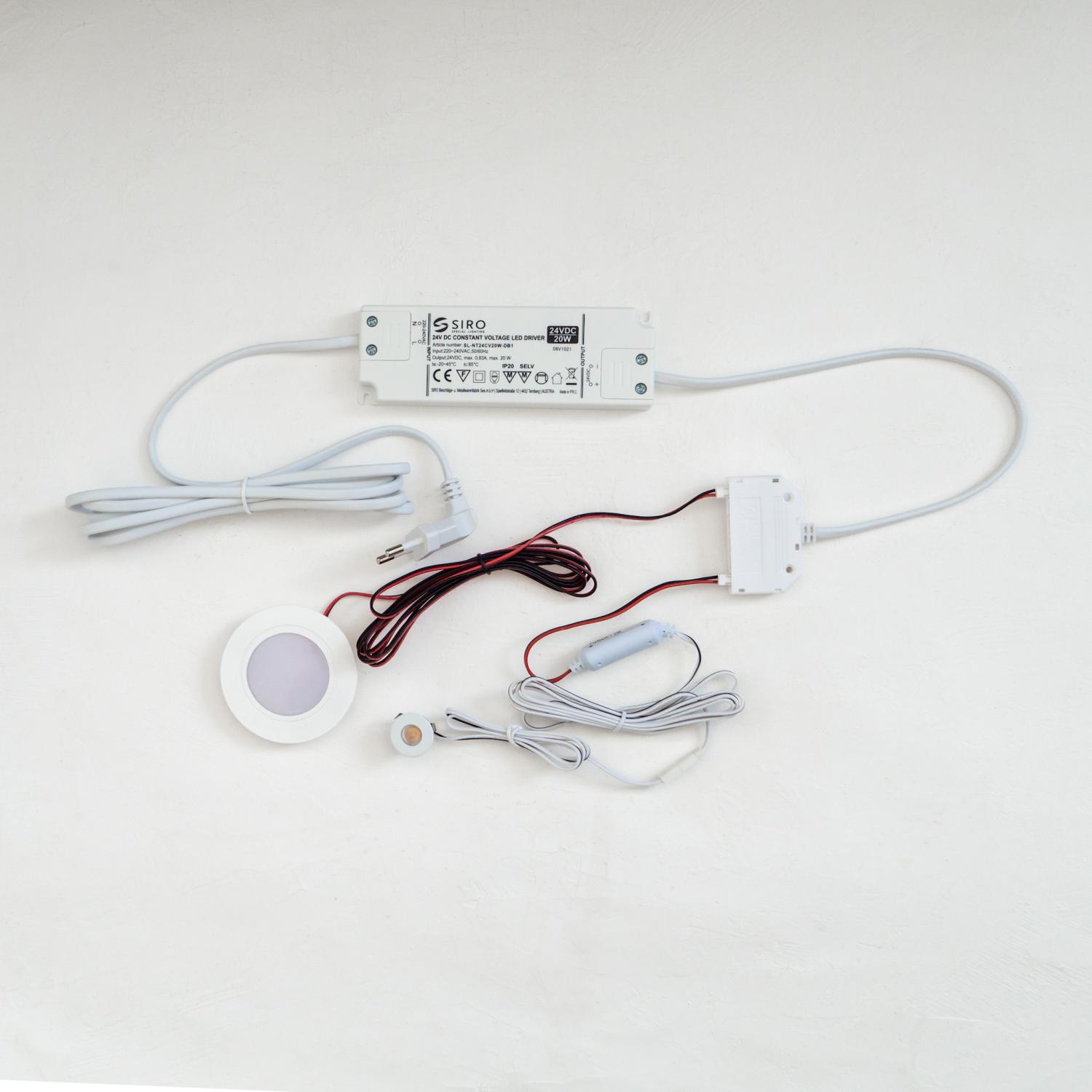 - 20W driveren kan drive opptil 6 spotlights, 18 mini spotlights og opptil 1,5m Mono LED-strip.