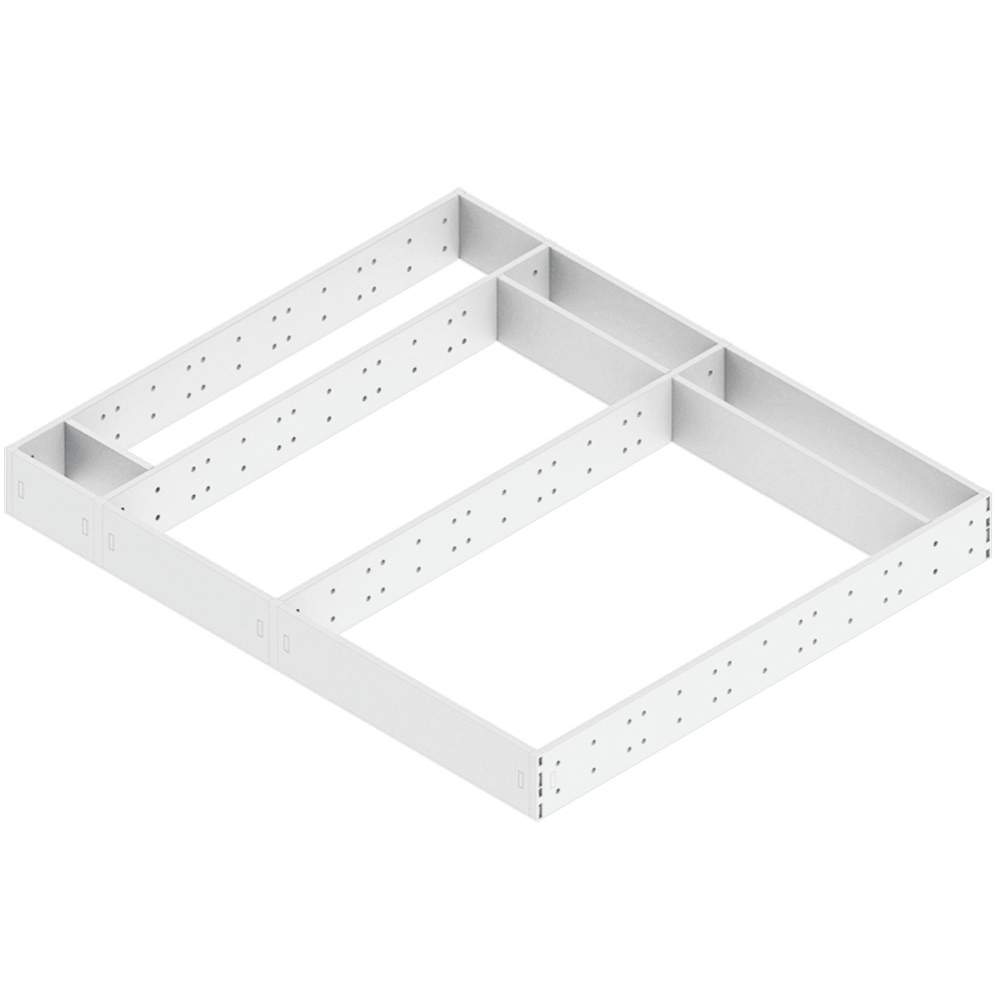 Bestikkinnsats Frame i hvit metall med stilrent design for kjøkken, baderom og garderobe. Frame passer de fleste kjøkkenskuffer på markedet, inkludert Blum Tandembox, Blum Legrabox og Grass Vionaro. Frame-serien er svært fleksibel, og du har stor mulighet til å påvirke innredningen i skuffene dine. Ved hjelp av metallrammer og skillevegger kan du skape rom etter dine egne ønsker og behov!