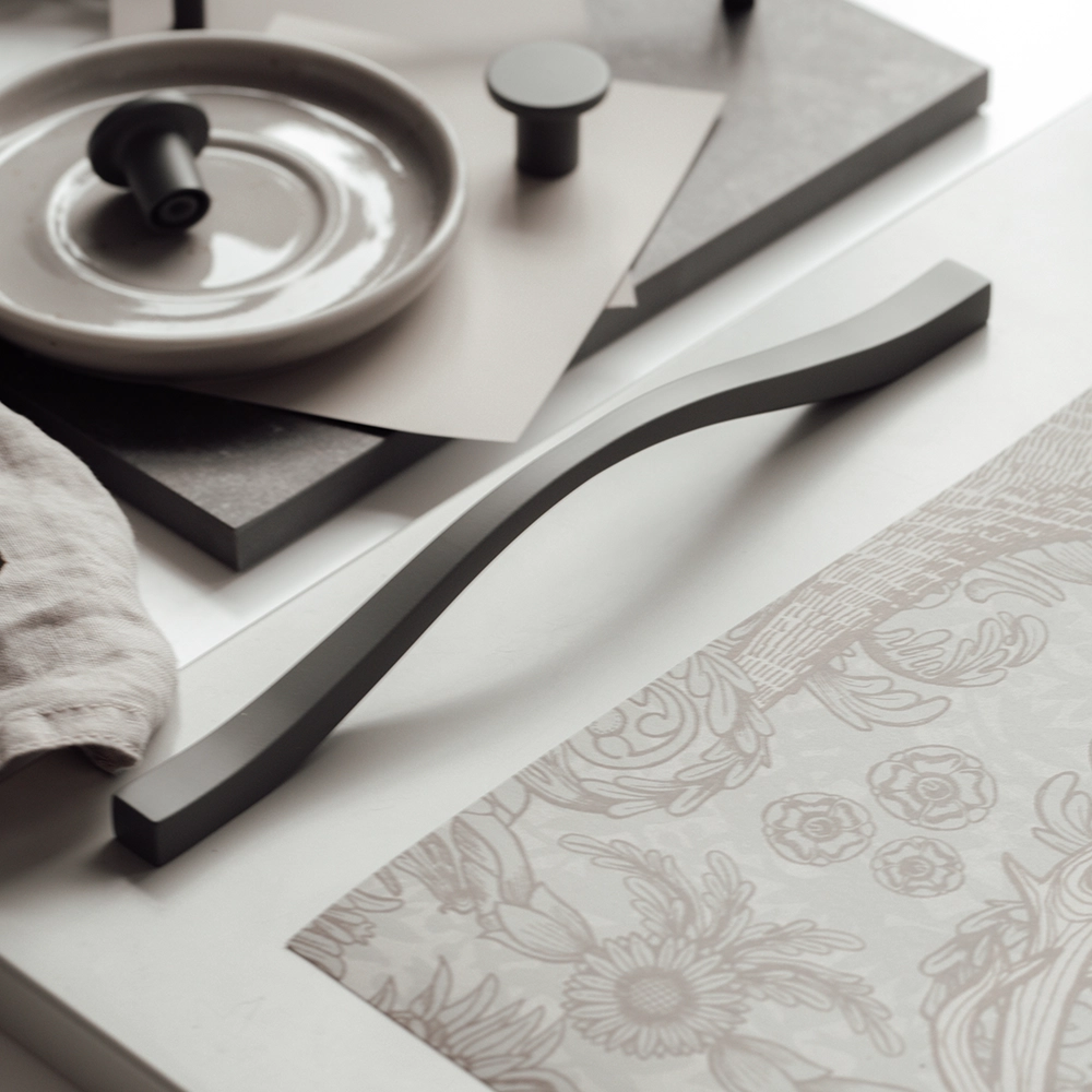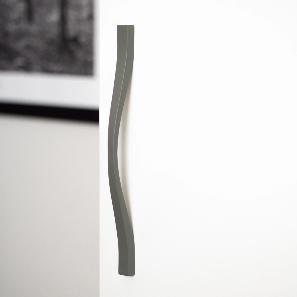 Flow kjøkkenhåndtak er et minimalistisk smalt beslag som blir en stilren detalj på dine kjøkkenskap, skuffer eller garderobedører. Flow har et mykt design som følger formen av en bølge mot skapene, og Flow er i tillegg utstyrt med to cc-mål i ett beslag slik at de passer til flere forskjellige kjøkken. Flow i mørkegrønn finish skaper en innovativ følelse på kjøkkenet, samtidig som grønt både er beroligende og gir en følelse av å ta inn naturen. Våre mørkegrønne beslag har fargen NCS-6005-G50Y.