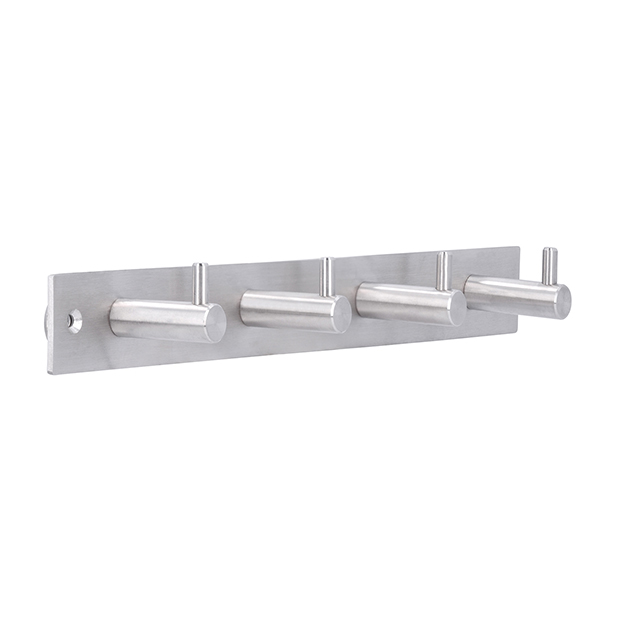 Veggfeste med plass til 4 kroker i rustfritt stål. Stilrent design som fungerer både på badet og på kjøkkenet.