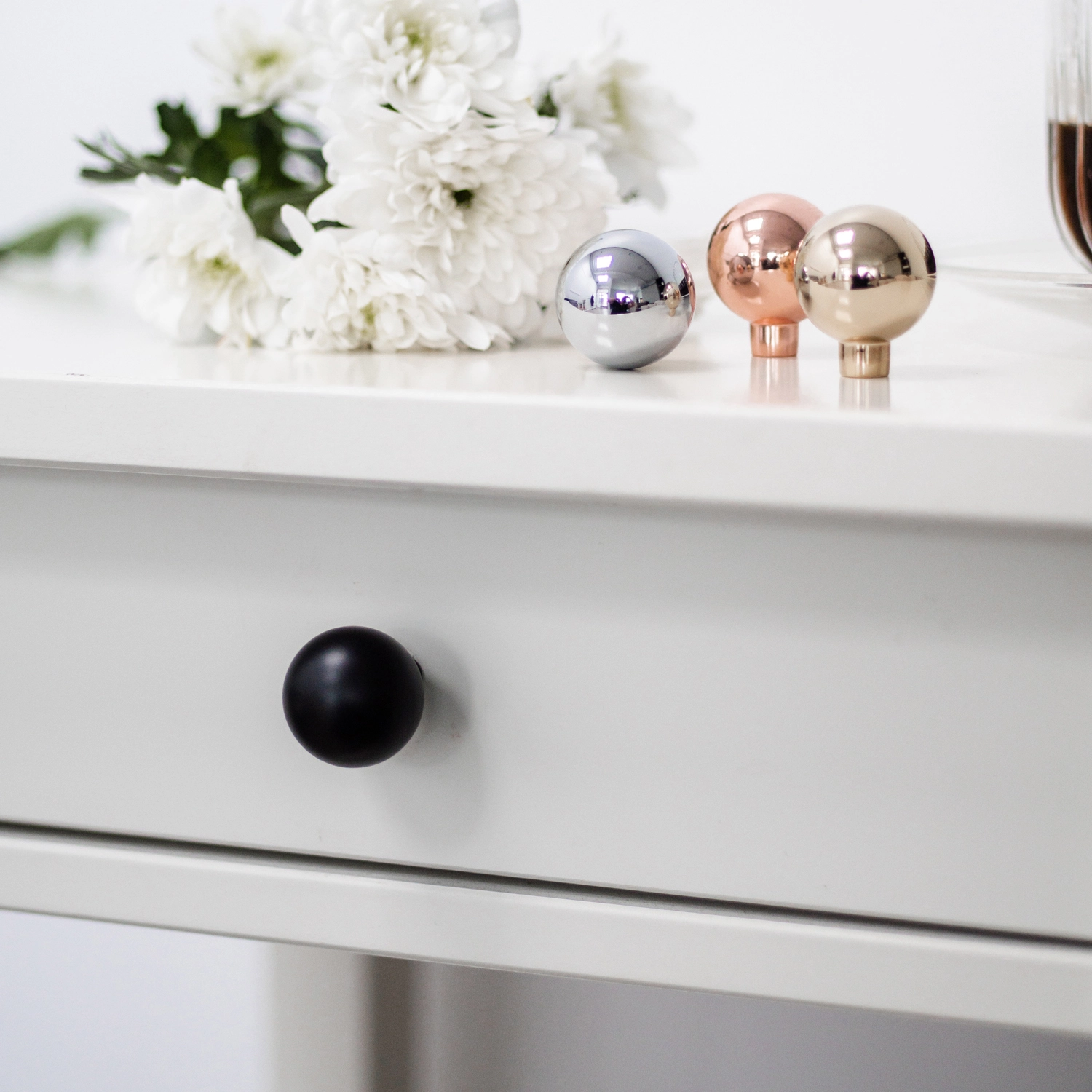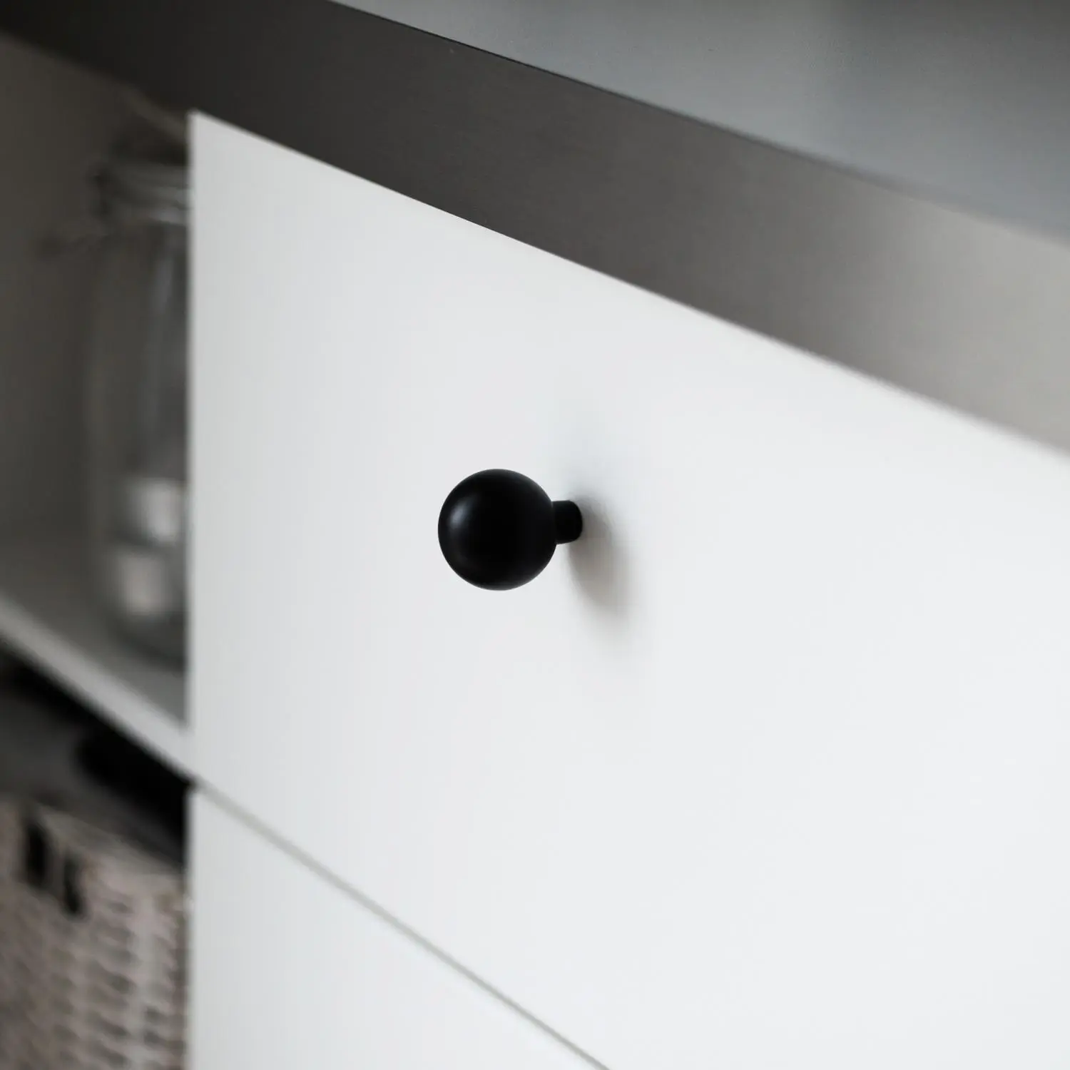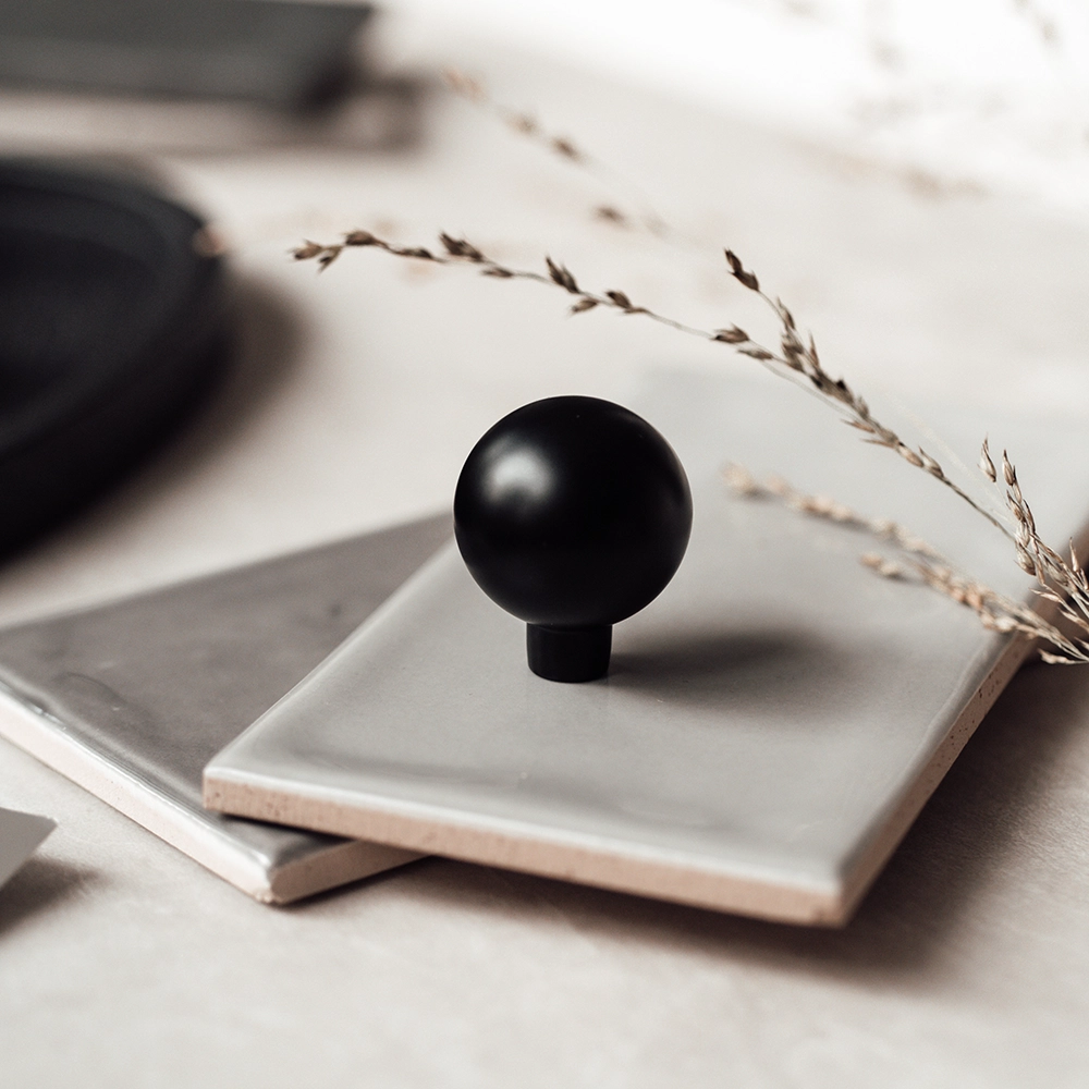 Rund, stilren skuffeknott i svart metall til kjøkken, baderom eller skjenk!