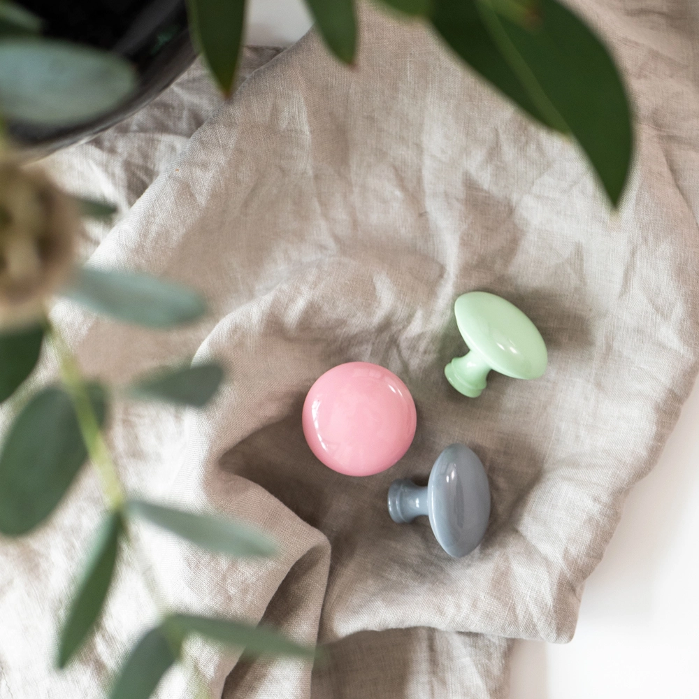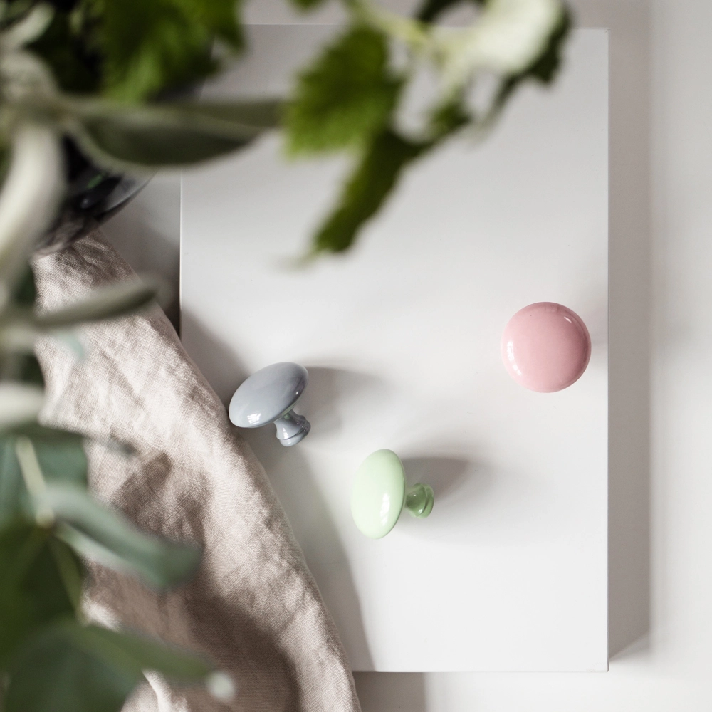 En leken kjøkkenknott i myk rosa tone og lett avrundet form. Knotten passer perfekt som et herlig fargeinnslag på kjøkkenet eller som knott til garderoben og kommoden. Del av vår Candy-kolleksjon med 3 kjøkkenknotter i pastellfinish.