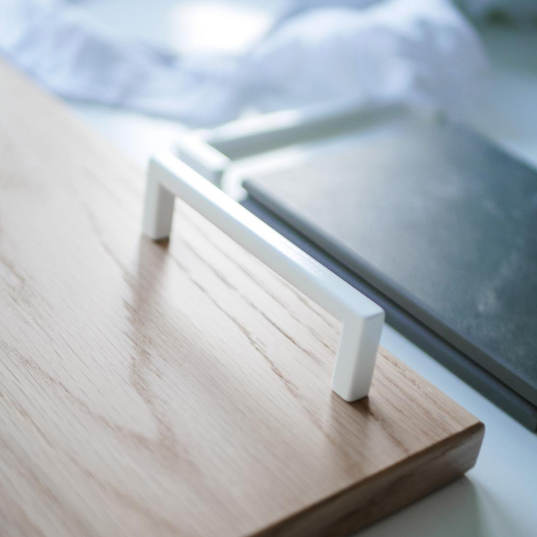Klassisk kjøkkenhåndtak i rett modell med en avrundet underside for et komfortabelt grep.