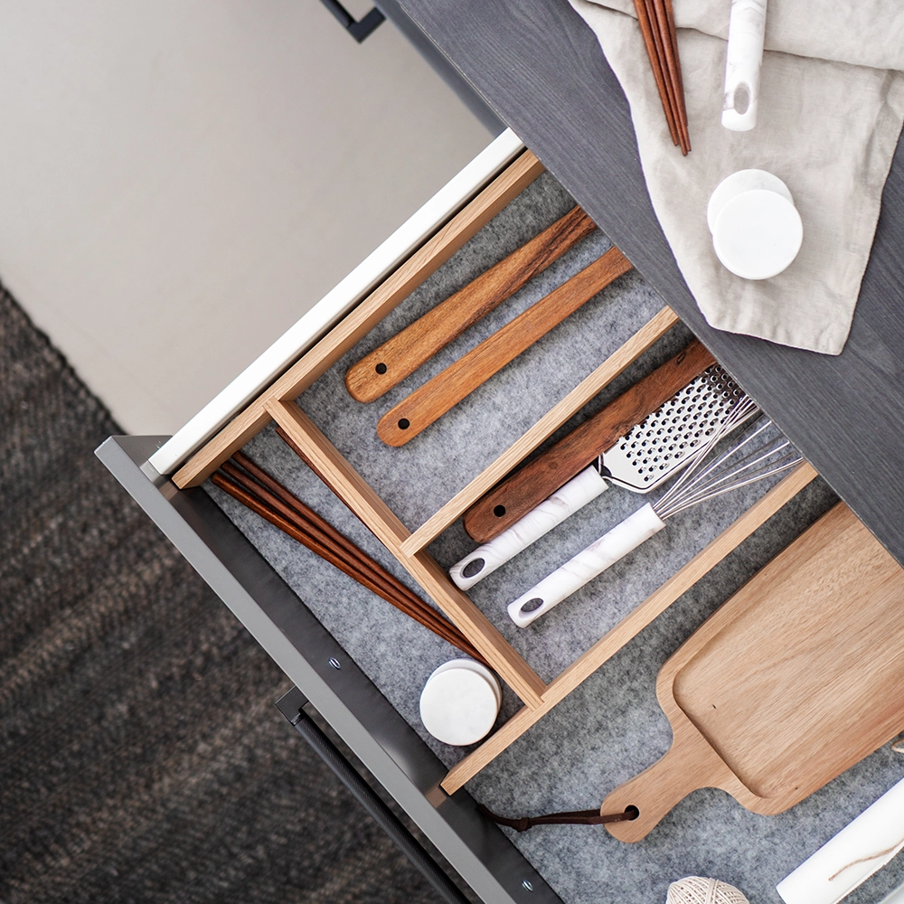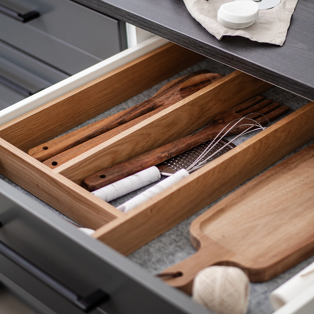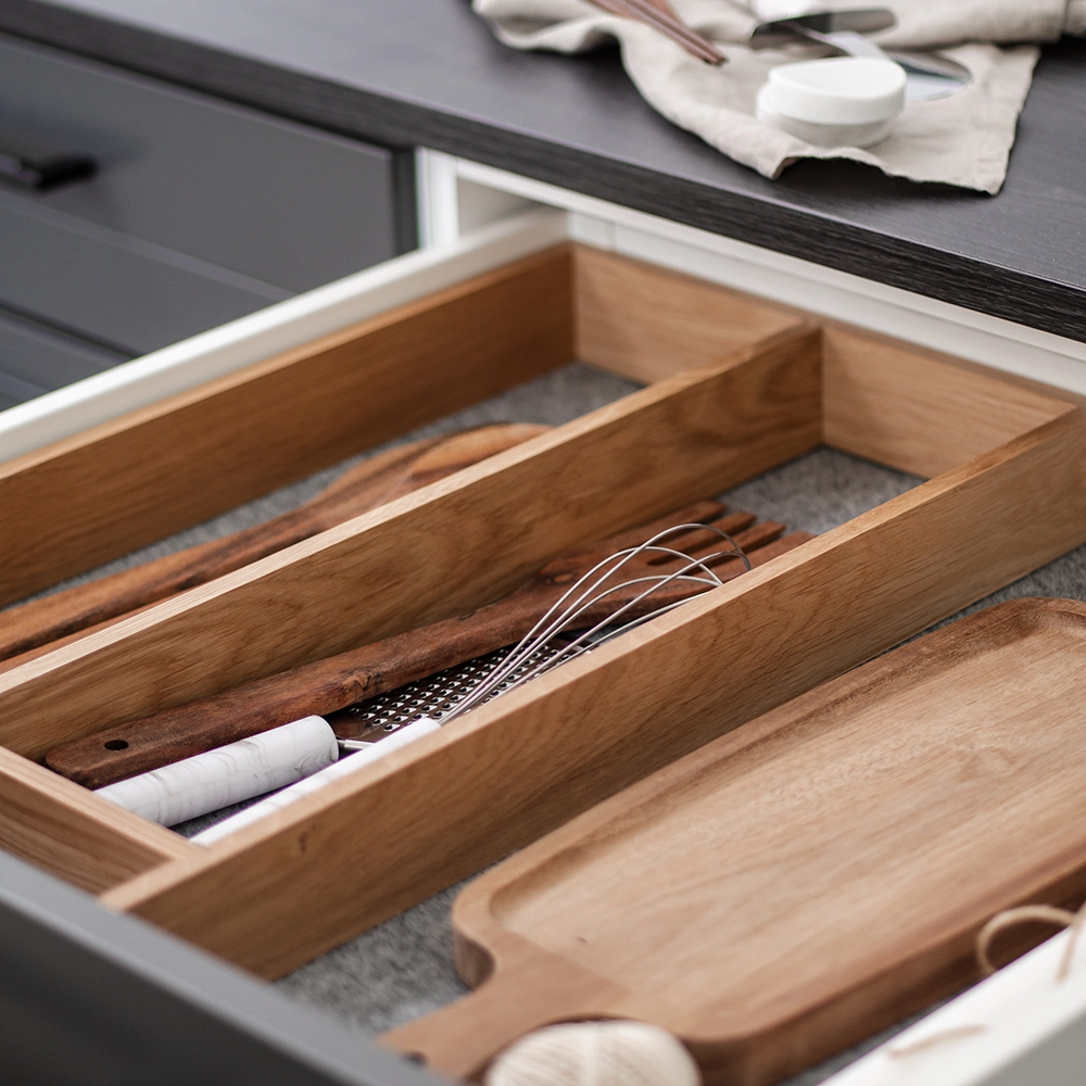 Redskapsskuff i eik til kjøkkenskuffer. Kombiner med andre deler i Bas-serien.