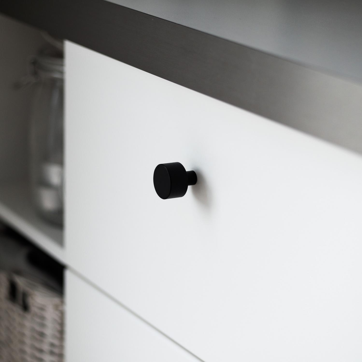 - Knotten monteres gjennom en dør eller skuff med medfølgende skrue.