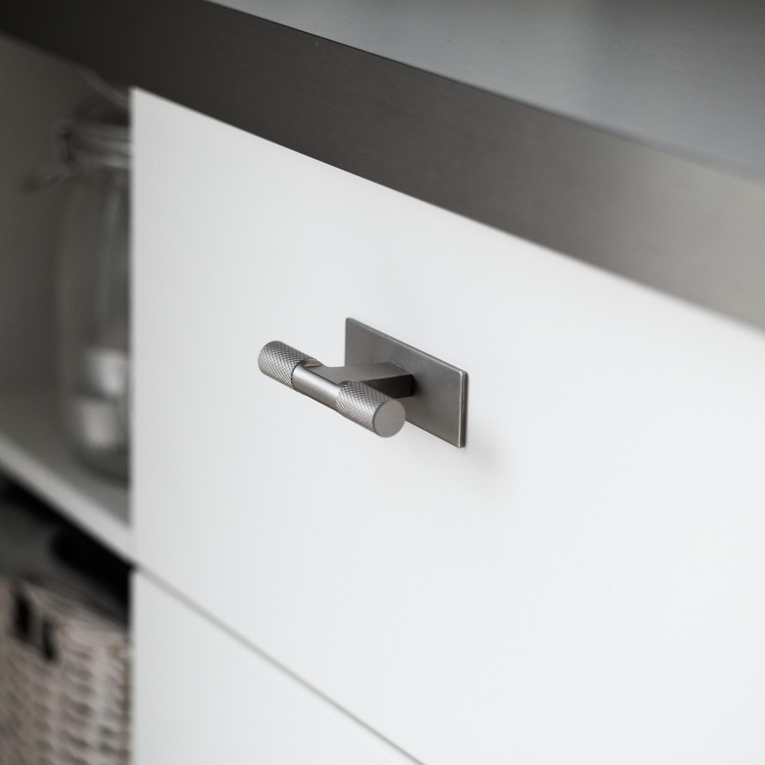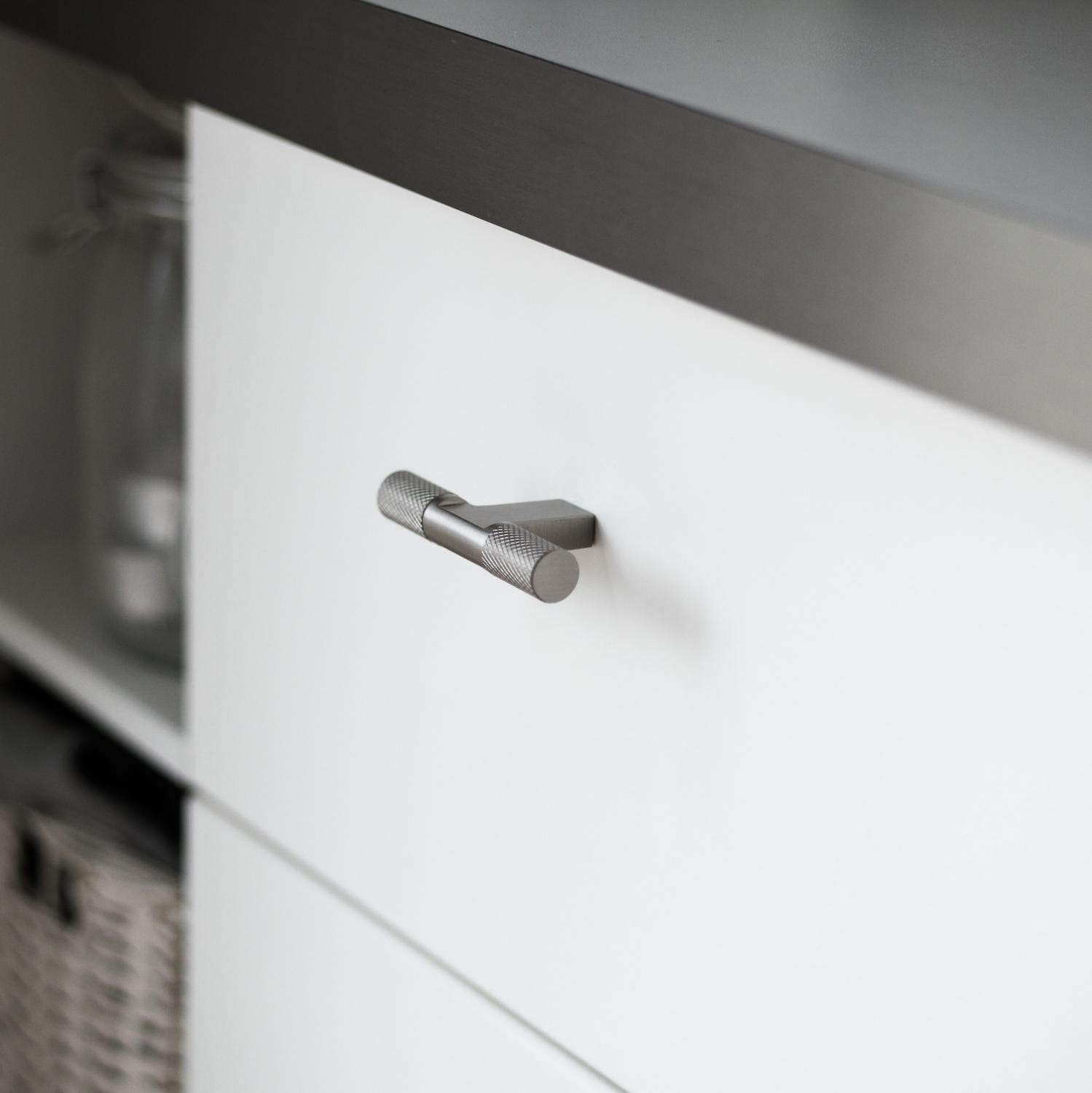 - Knotten monteres gjennom en skapdør eller skuff med medfølgende skrue.