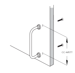 - Beslaget monteres med medfølgende skruer gjennom en dør eller skuff.