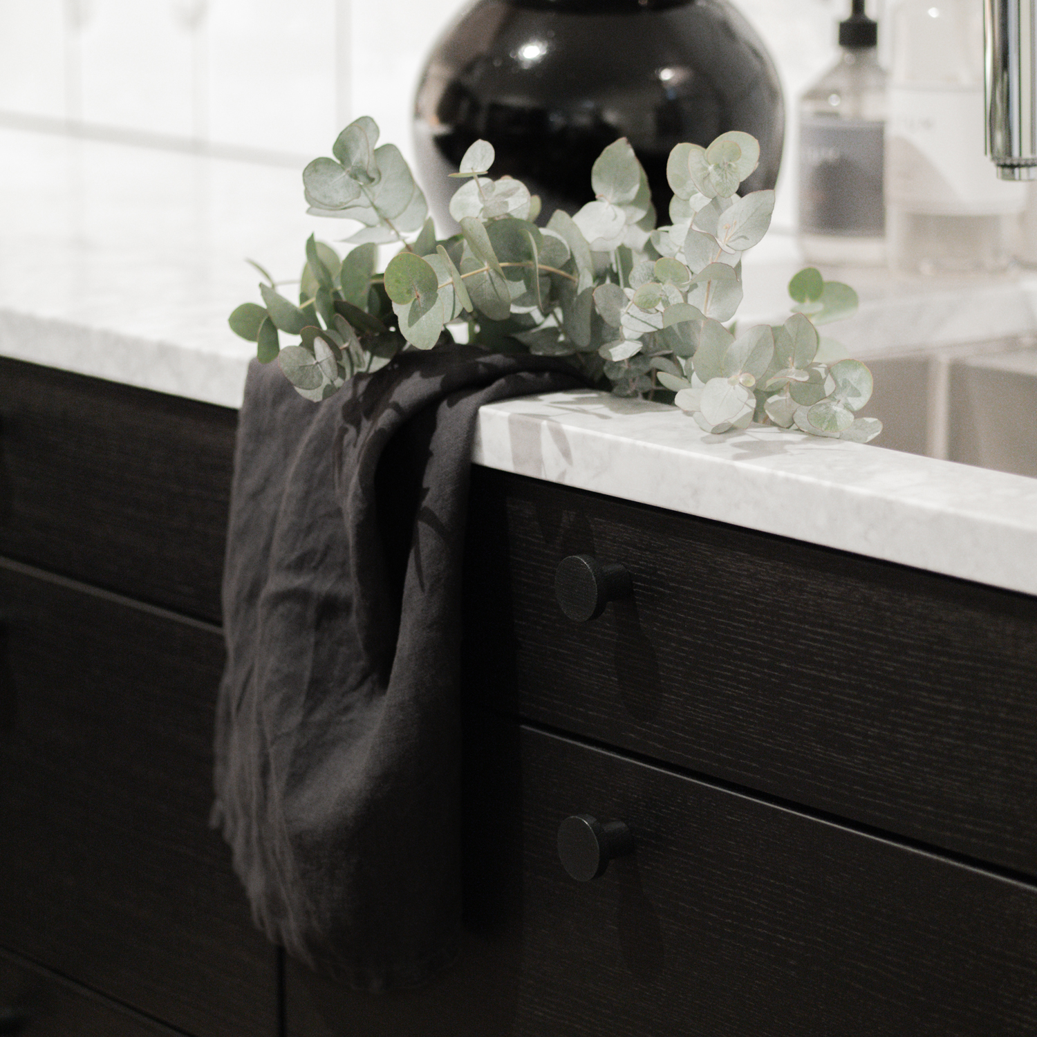Yumi er en stilren og moderne treknott, her i svartbeiset eik. Knotten har et godt grep på døren eller skuffen, takket være sin klassiske form, og designen er moderne og passer de fleste stiler i både kjøkken og bad, men også gjerne på en kommode eller skjenk. Som treslag er eik veldig hardt og sterkt, noe som gjør det til et veldig holdbart materiale å ha i sin innredning i hjemmet.
