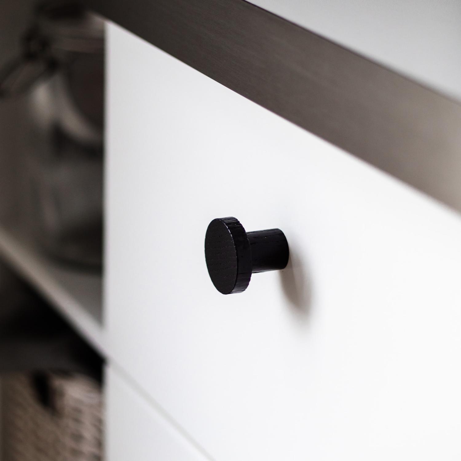 Yumi treknott har en moderne og stilren design og er laget i svartbeiset eik. Ball passer både på kjøkkenet, på garderober og på en kommode.